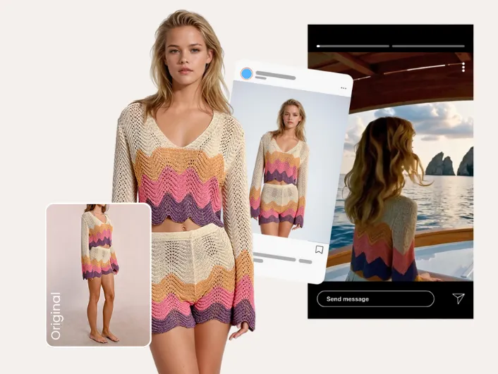 Models can now instantly wear any product — lingerie, suits, shape wear, accessories — styled and posed to reflect any collection’s essence.